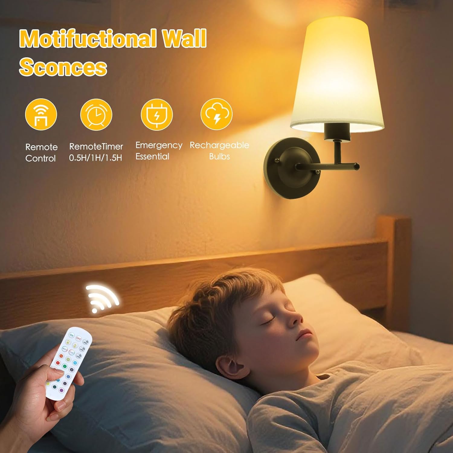 | Included Components | 1 x Mounting Hardware Set,1 x User Manual, 2 x Metal Light Fixtures, 2 x Rechargeable LED Bulbs, 2 x Type-C USB Charging Cables, 2 x White Fabric Lamp Shades, Remote Control |