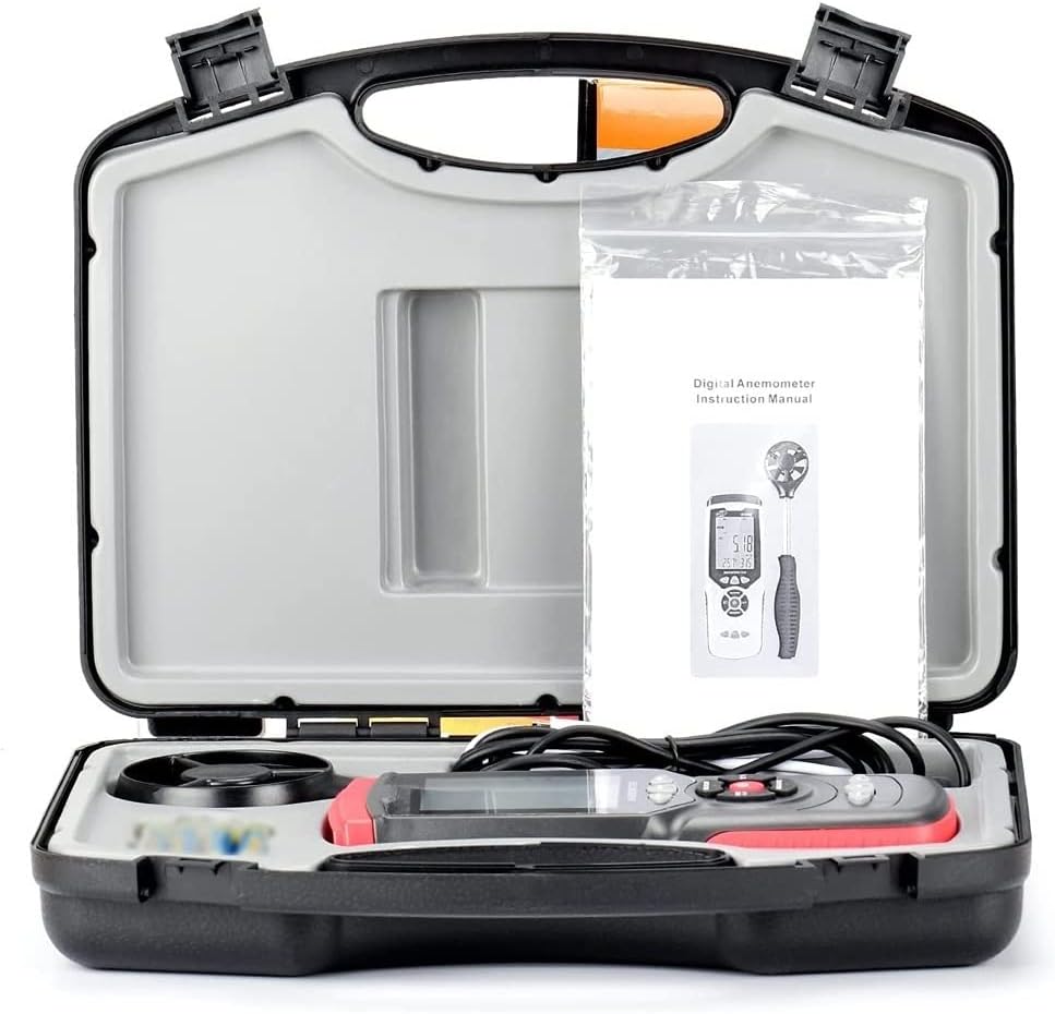 Specifications:Material: ABSWind Velocity Unit: m/s, ft/min, knots, km/h, mphWind Velocity Range: 0~45m/s, 0~8800ft/min, 0~88knots, 0~140km/h, 0~100mphWind Velocity Accuracy: ±3%±0.1, ±3%±20, ±3%±0.2, ±3%±0.4, ±3%±0.2Wind Flow Unit: CFM(FT3/MIN), CMM(M3/MIN)Wind Flow Range: 0~999900ft3/min, 0~999900m3/minWind Temperature Unit: ℃, ℉Wind Temperature Range: 0~45℃, 32~113℉Wind Temperature Accuracy: ±1.0℃, ±1.8℉Humidity Range: 10~90%RH (non-condensing)Humidity Accuracy: ±5%RHOperation Conditions: 0~50℃(32~122℉), 40~80%RHStorage Conditions: -40~60℃(-40~140℉), ≤80%RHPower Supply: 4 * 1.5V AAA battery (NOT included)Meter Size: 194 * 73 * 38mm / 7.64 * 2.95 * 1.49inVane Size: 74 * 35 * 268-531mm / 2.91 * 1.38 * 10.55-20.91in(length adjustable)Item Weight: 412g / 14.55ozPackage Weight: 1224g / 43.20ozPackage Size: 32 * 24 * 8.5cm / 12.60 * 9.45 * 3.34inPacking List:1 * Anemometer1 * USB Cable1 * Manual
